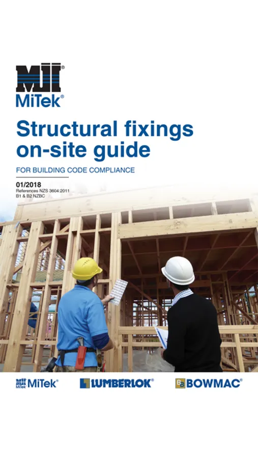 This is MiTek New Zealand Limited's publication of the Structural Fixings Guide for Building Code Compliance.
