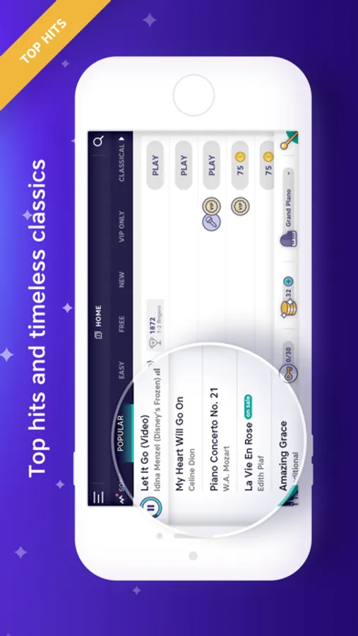 Enjoy a rich songbook of songs across a wide variety of music genres like classical, popular hits, traditional and kids’ songs. With new free songs added daily you can learn new tunes, perfect your favorites, share them with the world and even challenge your friends to see who is the better pianist.