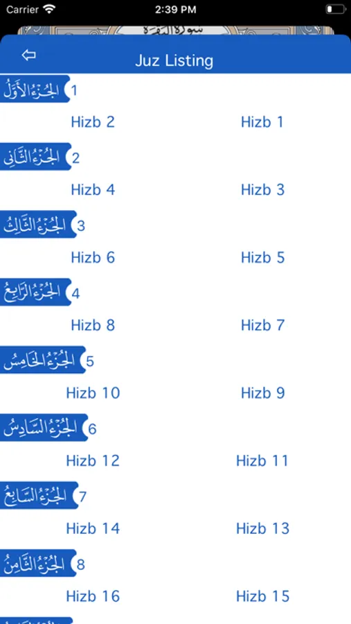 Juz list now has Hizb Listing included.