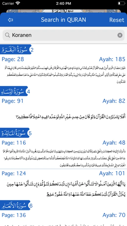 Search in Quran in Swedish, English, Arabic or English Transliteration.