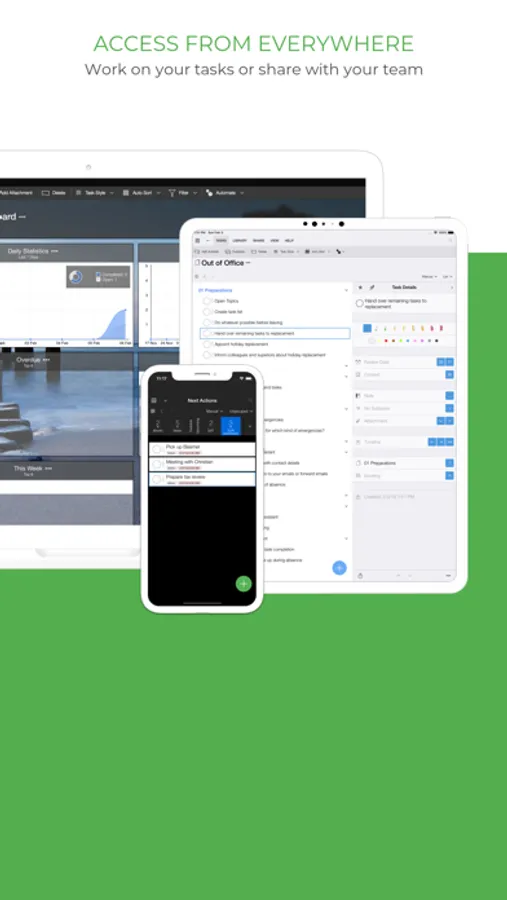 • Syncs across all your devices. Access your tasks from anywhere anytime