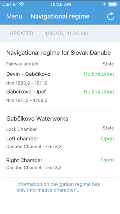 Offered information content should contribute to the higher awareness of the fairway users on current navigational conditions on the Slovak section of the Danube as well as in the neighbouring countries.