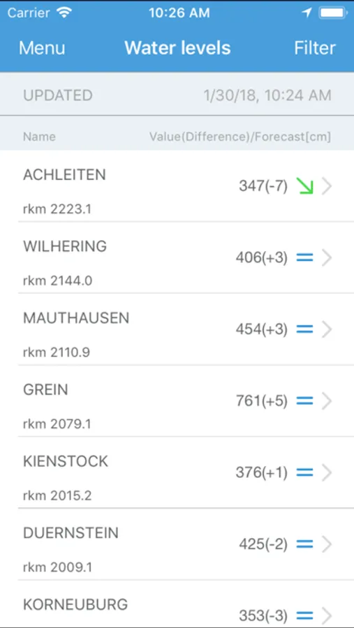 - Actual Water level information from Slovak and Austrian waterway gauges, including history overview and predicted water levels when available