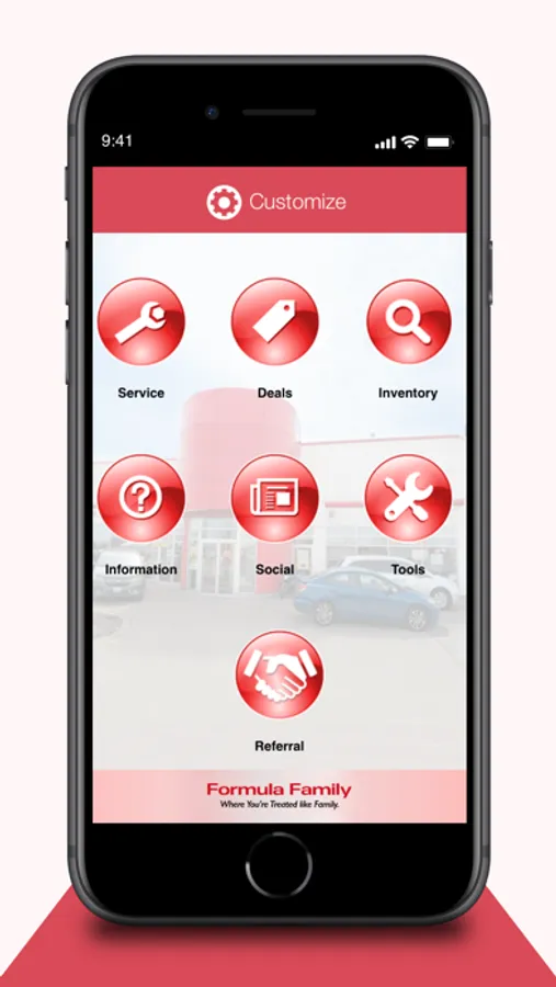The Formula Family Auto Dealer App allows Dealerships to connect with their customers and communicate on a regular basis. Features include Scheduling Service Appointments, Push Notify Deals & Promotions, Customer Survey & Feedback, Access to Dealership information including Product Inventory, Directions, Roadside Assistance, Staff Directory and more.