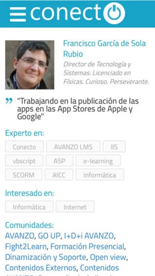 Conecto es un Entorno Social de Aprendizaje que permite a las personas que lo usan desarrollarse personal y profesionalmente a través de la colaboración.