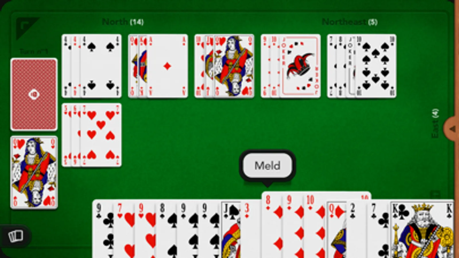 Play rummy with 2, 3, or 4 players either with a group of friends or using simulated opponents playing with high-level artificial intelligence.