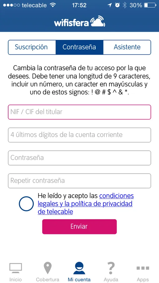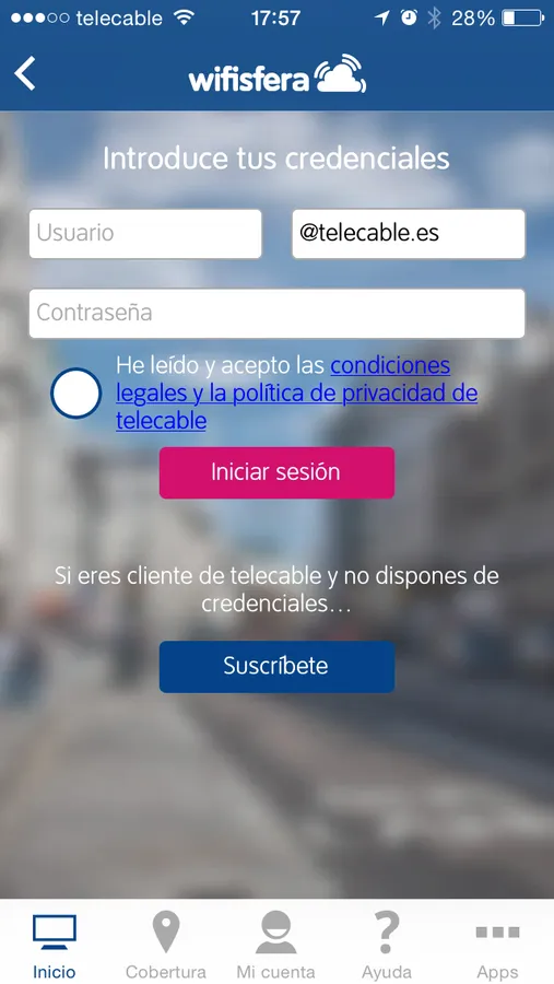 Si eres cliente de telecable y no dispongas de credenciales de acceso a wifisfera, puedes solicitarla desde la app y te serán entregadas en tu correo electrónico