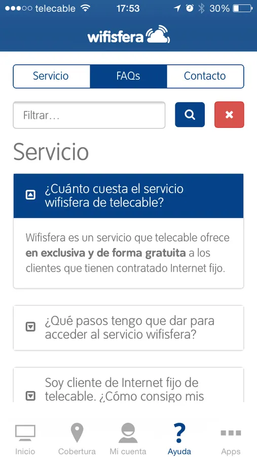 Consulta las preguntas más habituales sobre el servicio wifisfera directamente desde la app.