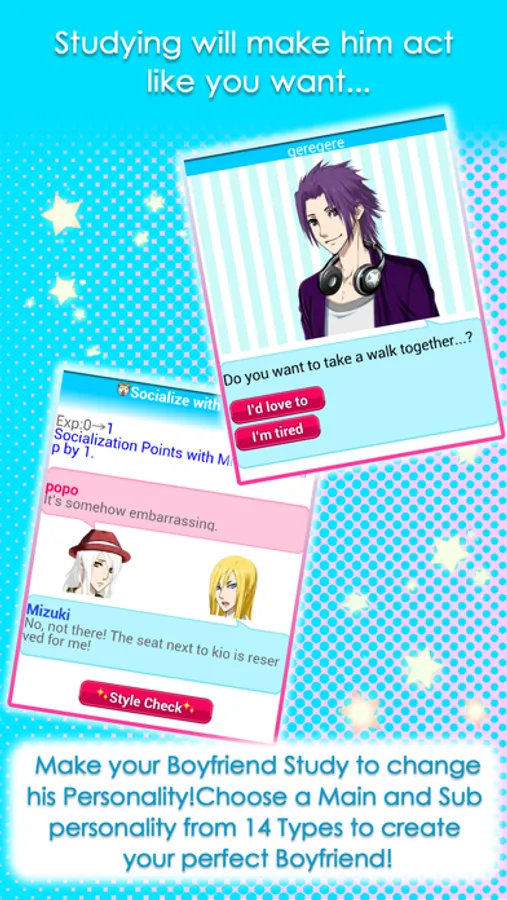 - Talk with him, go on dates and get close to one another with seasonal Events and Scenarios!