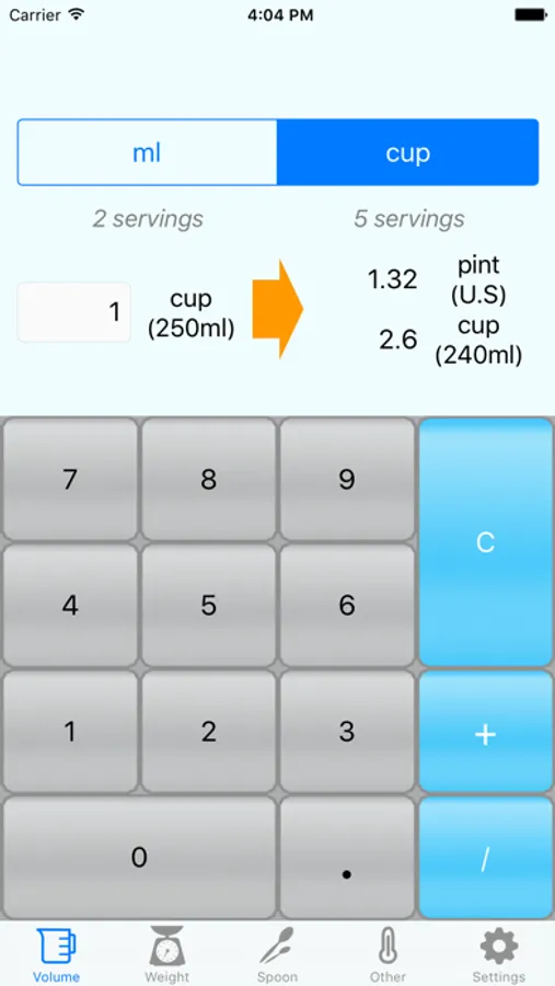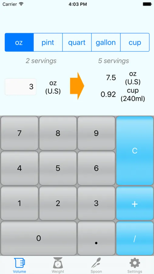 - Volume(e.g. ml to ounce, pint, quart and gallon)