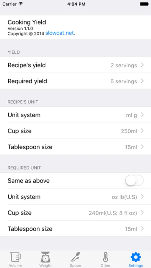 (a) Change "Recipe's yield" and "Required yield" on the settings screen.