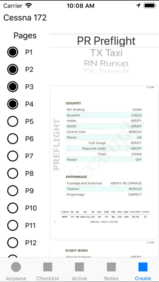 Active Checklist provides pre-loaded checklists for two airplanes: the Cessna 172 and the Piper PA-28. You can also easily create and use your own customized checklists.