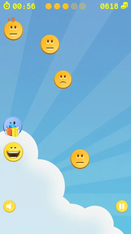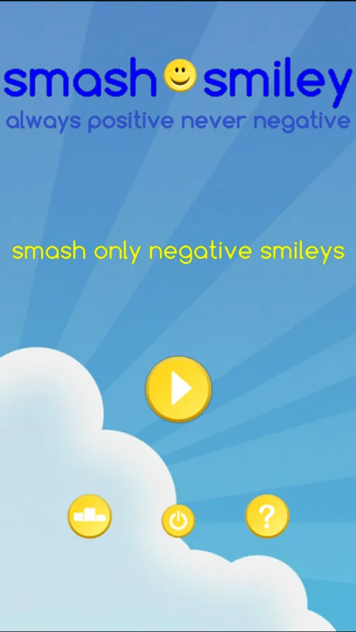 Always positive, never negative. Smash only negative smileys. If you hit a positive smiley, you lose. If you accumulate five negative smileys, you lose. The smileys appear faster and faster. Hit extra icons to get bonifications and go further.