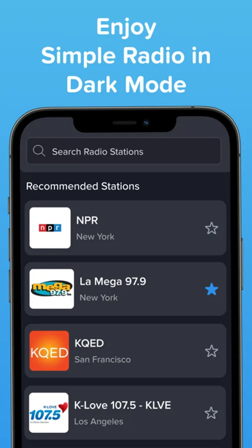 • Save your favorite stations and listen to them in one tap