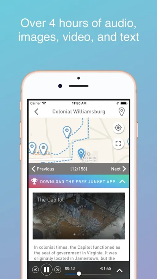 We welcome you to experience Colonial Williamsburg in a way you’ve never done before. iTourMobile's virtual tour guides tell you everything you need to know about this historic hotspot. No more walking in front of a place and thinking, “What is this, what was it for, and why is it important?”
