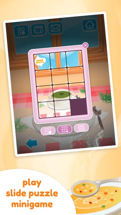 After making your soup, you can have fun eating it or playing a slide puzzle minigame.