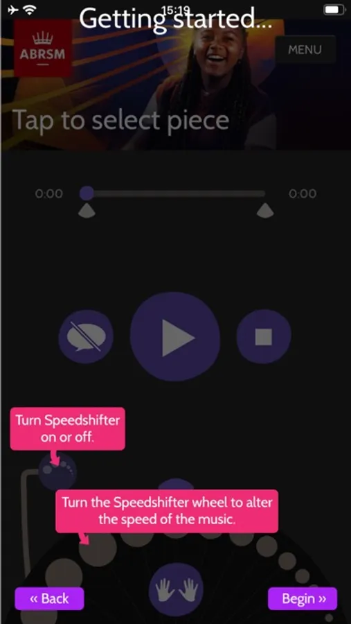 • Slow down or speed up the music to a tempo that suits you, for slow careful practice.