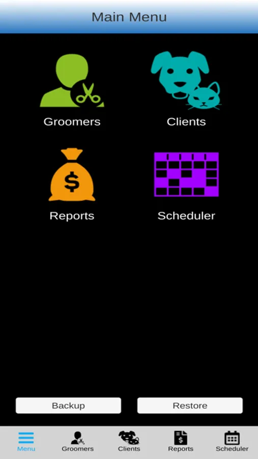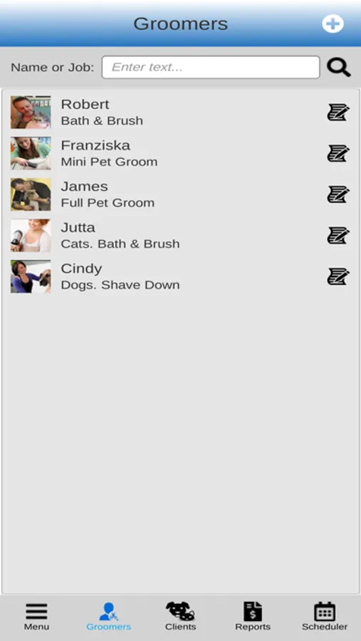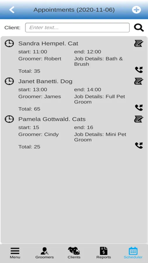 The pet grooming software’s menu features four programs including Groomers, Clients, Reports and Scheduler. In the groomers section information about all groomers can be stored and easily retrieved whenever required. It can highlight the availability of groomers and save appointments and dates according to designated jobs. Similarly in the clients section all information relating to the client and pets can be stored including name, address, and contact details. You can easily list appointments and view client lists whenever you want and also make a phone call directly from the program to any client required.