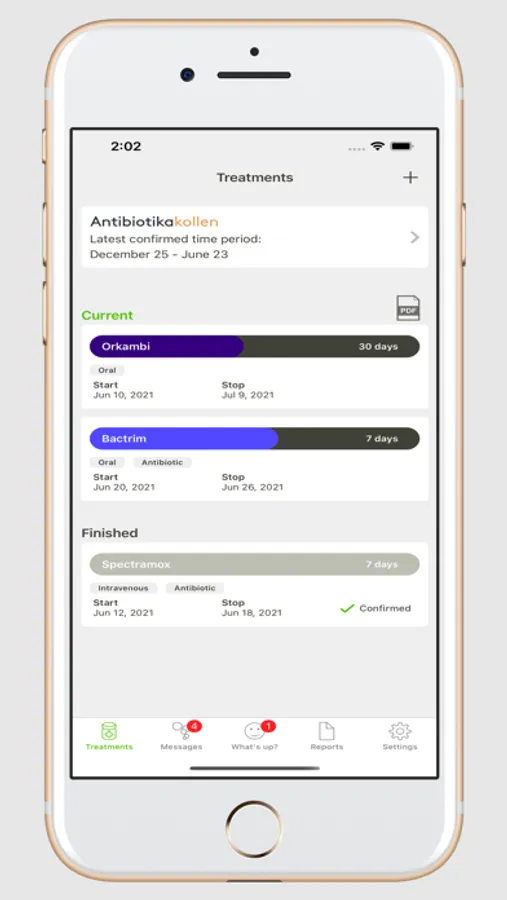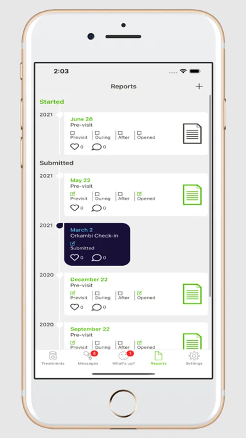 Genia also keeps track of your treatments and you can also share reports with your care team.