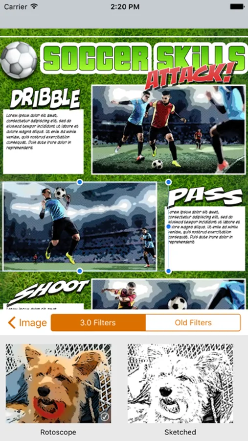 - Everything you need at your fingertips: speech balloons, photo filters, comic lettering, templates, shapes, shadows and effects.