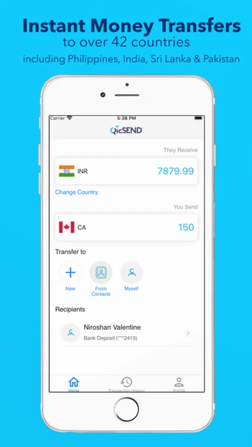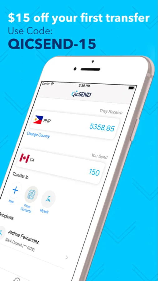 QicSEND allows you to SEND Money from the App depending on the country you live in.