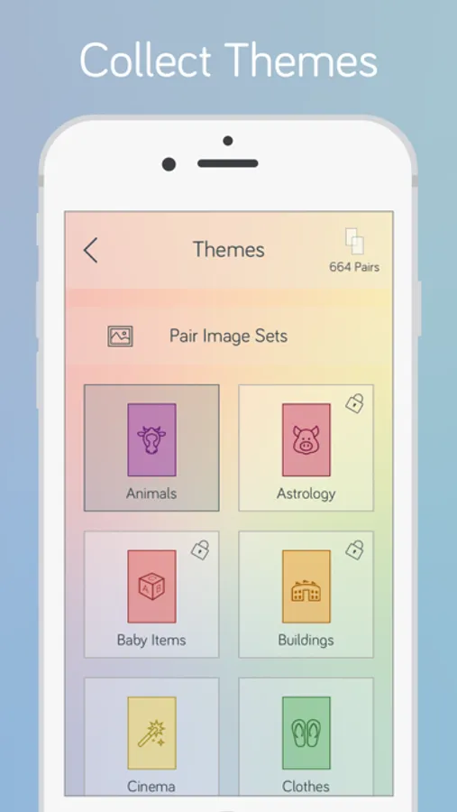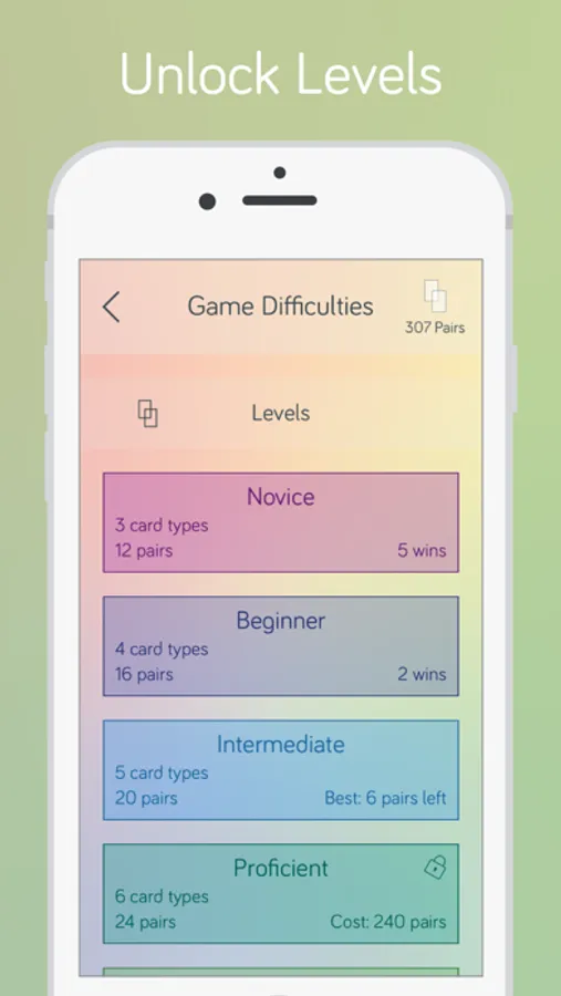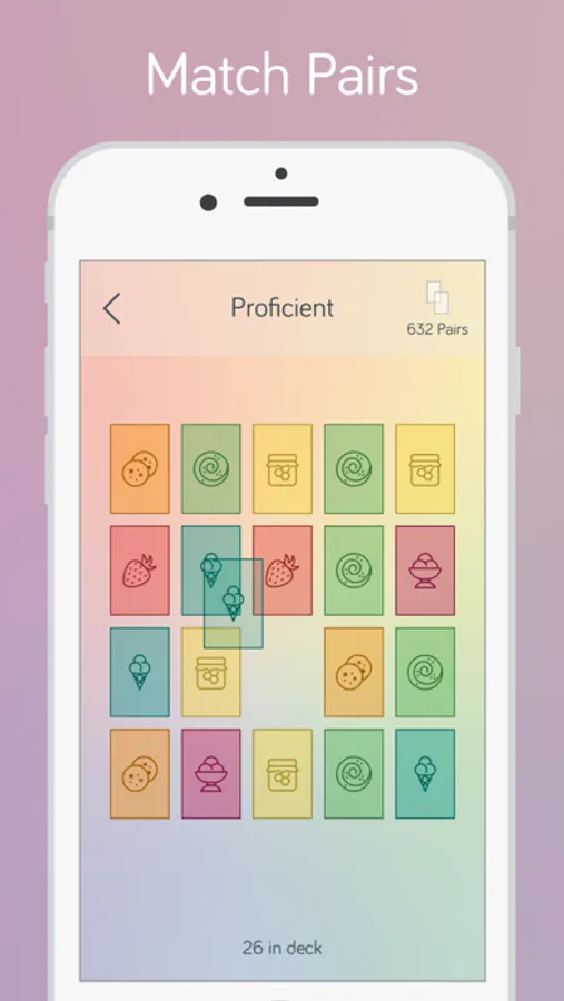 The game starts out simple with only a few types of pairs, but quickly gets harder as you unlock more difficulty levels.