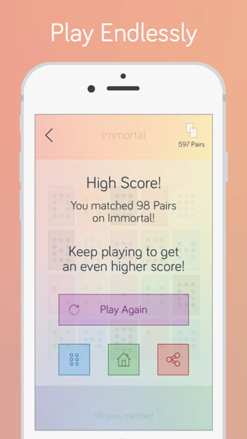 Challenge your friends on immortal mode by endlessly matching pairs to obtaining the highest score.