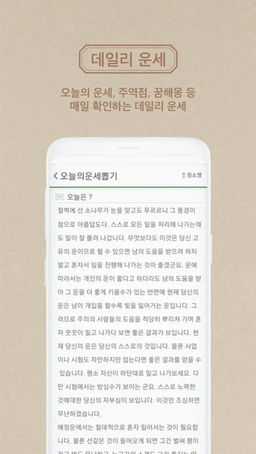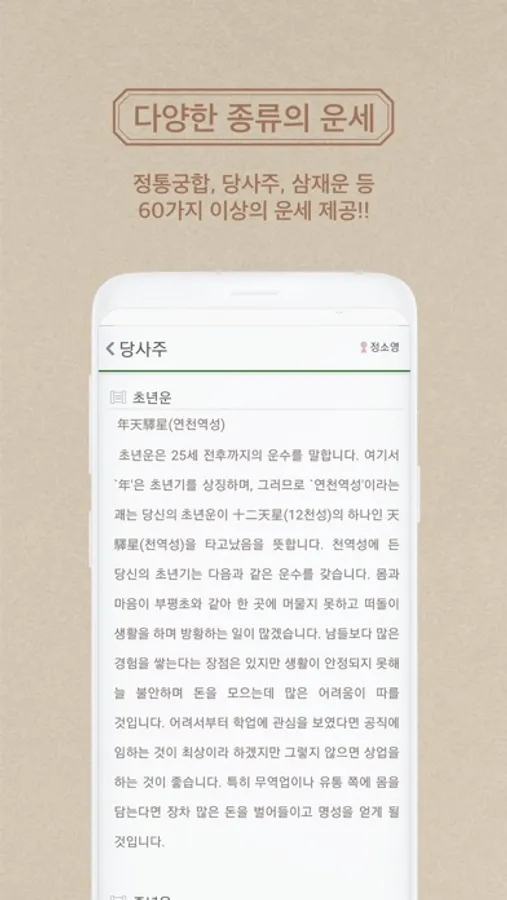 기존 운세와 질적으로 양적으로 차원이 다른 운세입니다.