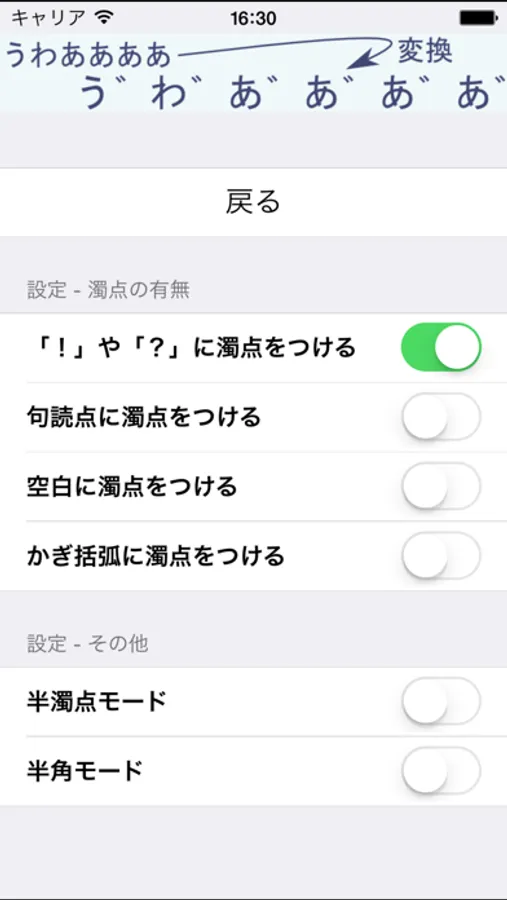 好きな文章に自動で濁点「゛」をつけるだけのシンプルアプリです!