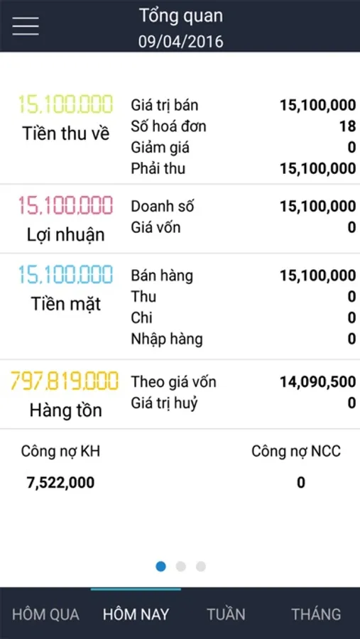 - Báo cáo: Thông tin doanh số, số hóa đơn, chi tiết hóa đơn theo thời gian thực