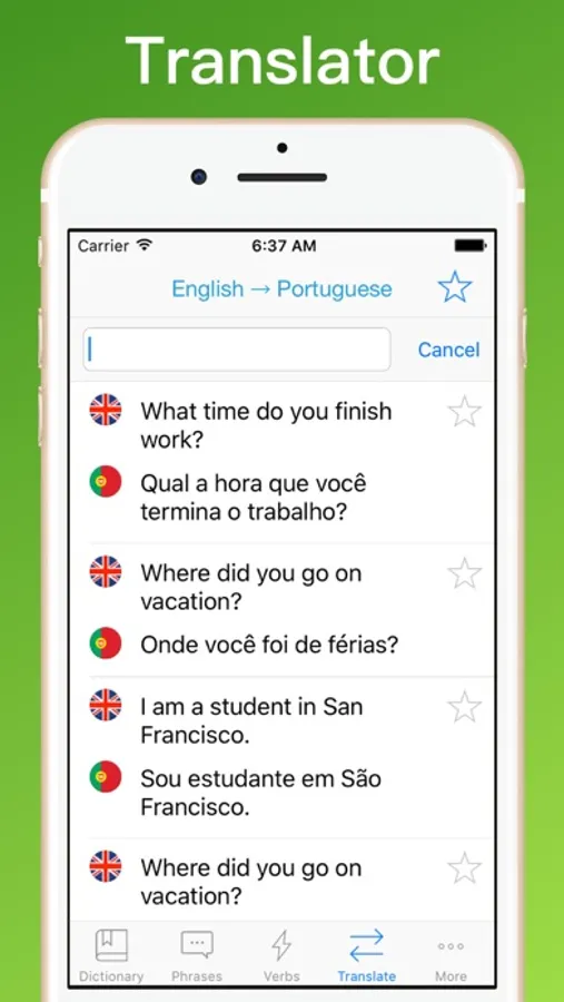 The #1 Portuguese English Translator & Dictionary for iPhone, iPad & Apple Watch ◇ Offline Translator & Dictionary ◇ Verb Conjugator ◇ Phrasebook ◇ Vocabulary Quizzes ◇ Flashcards ◇ Loved by Millions