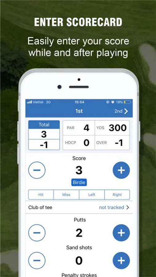 Analytic Tracking: Keep track of your performance. MISA Golf will not let you miss any vital information: Your Par, Birdie,... even the frequent of your Swings, Putts,v.v...
