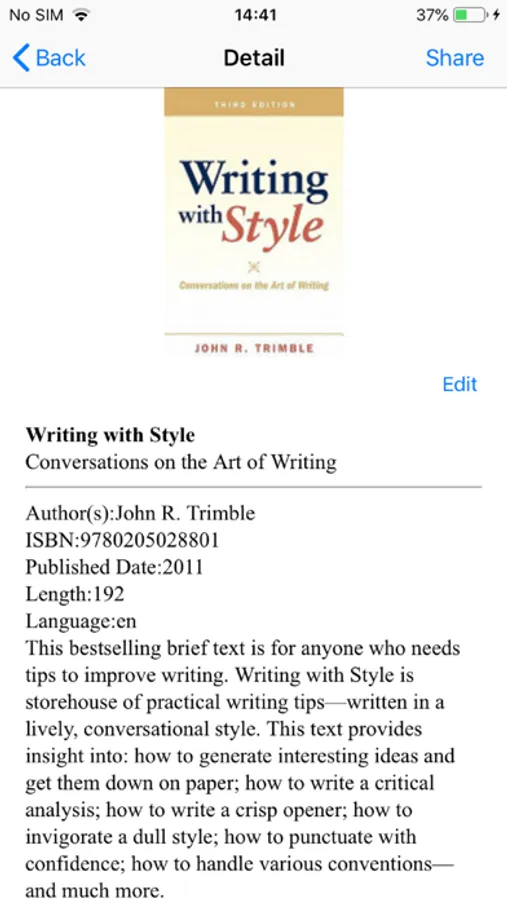 You can also view the detailed information of the book from the ISBN as well as share them via SNS (Social Network Services) or e-mail.