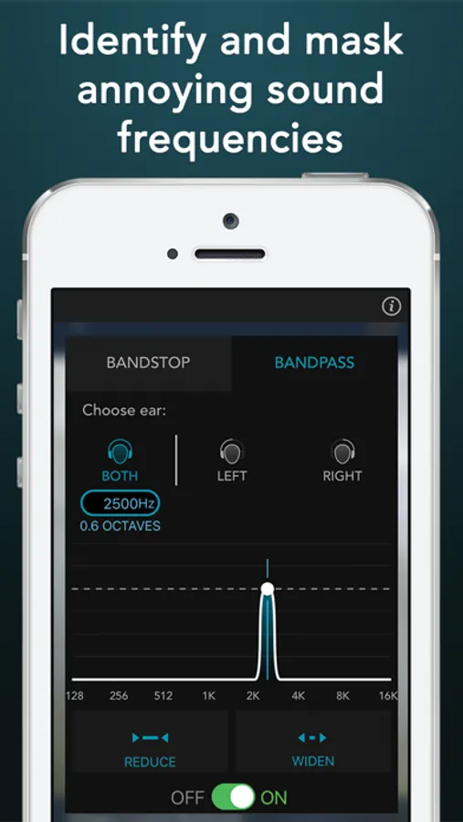 The advanced filters can be applied to both ears or just one ear, and different frequency ranges can be used for each ear.