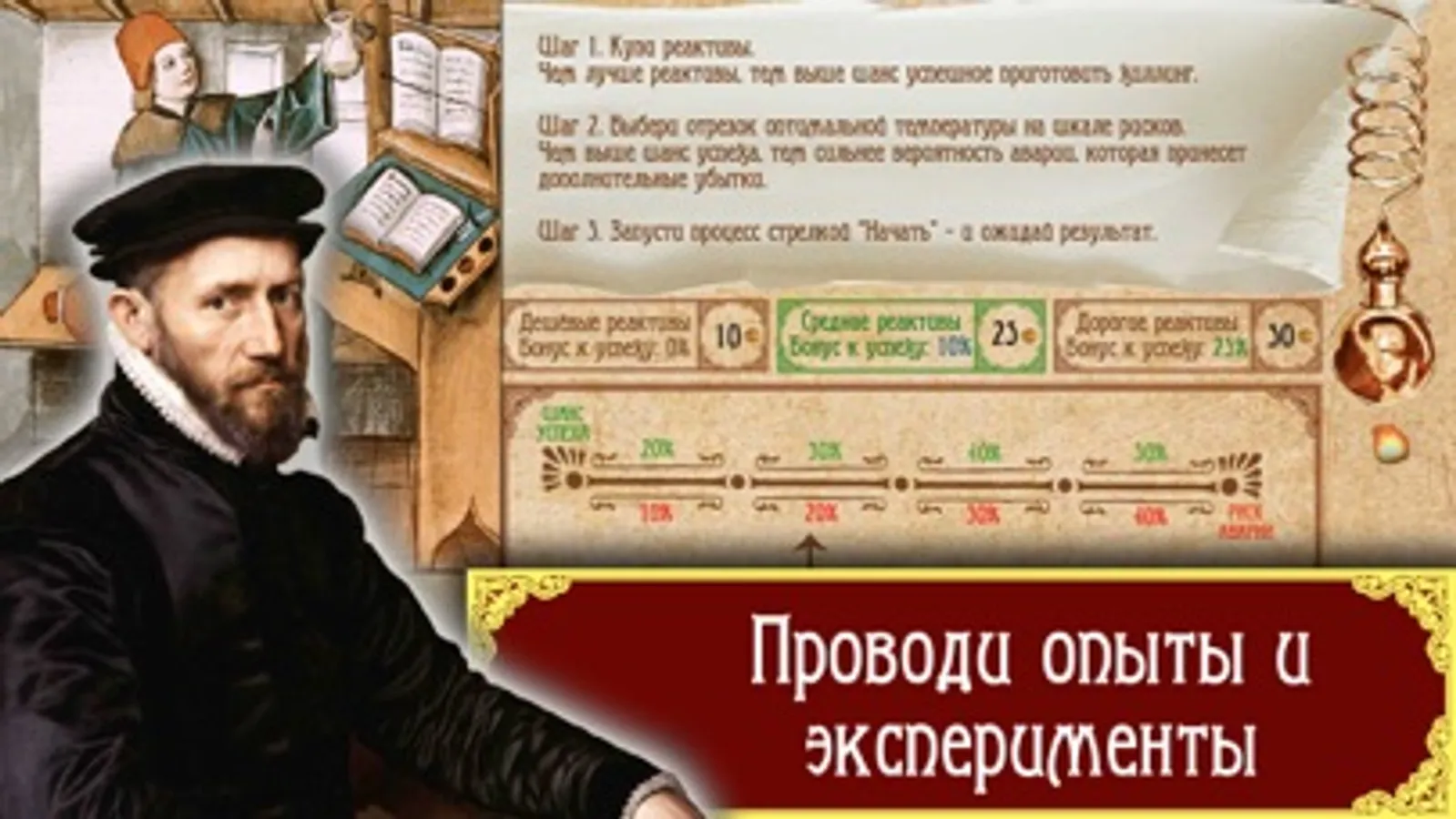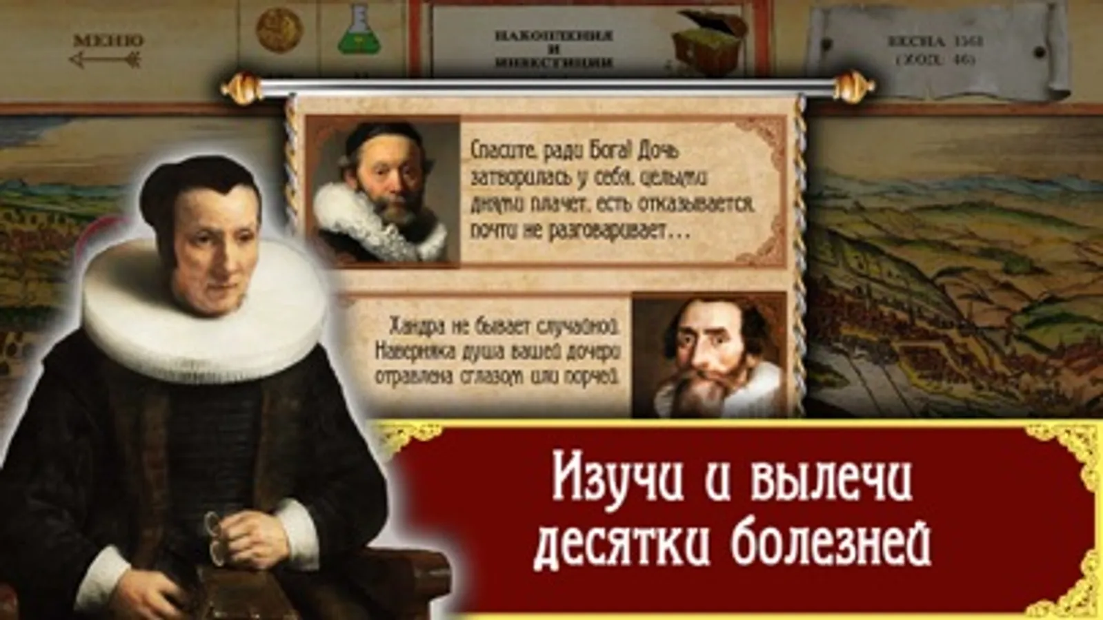 +++ Сыграй за любого из пяти персонажей: Цирюльник, Аптекарь, Ученый, Знахарка, Монах.