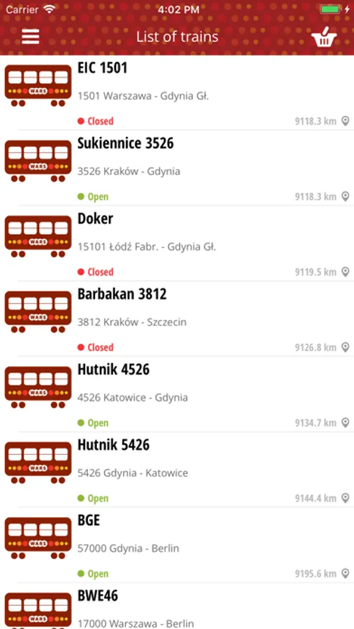 2. Wybierz pociąg, którym jedziesz by złożyć w nim zamówienie.