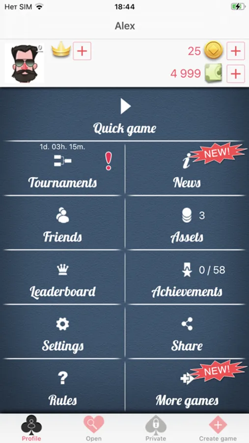 • Real online multiplayer game with real people all over the world (2-6 players).