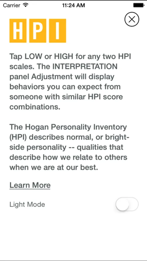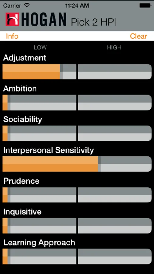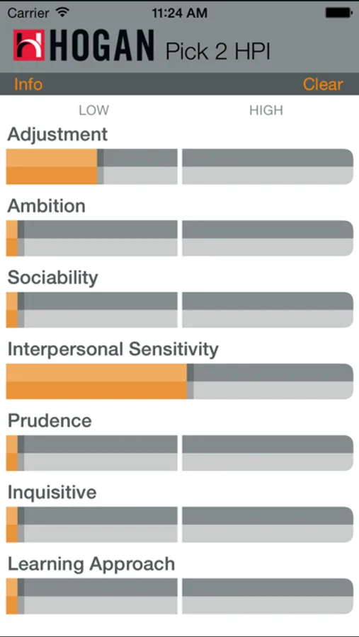 Hogan Pick 2 HPI allows you to easily interpret the high or low score implications of any two HPI scores by tapping LOW or HIGH for any two HPI scales. The INTERPRETATION panel will display behaviors you can expect from someone with similar HPI score combinations.