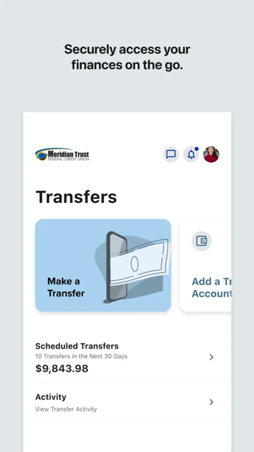 We combine freedom with security. Our mobile app has top notch multi-factor authentication and SSL encryption, to ensure you’re focused on soaring savings, instead of scheming scammers. With the dynamic duo of your smartphone and the mobile app, you can easily: