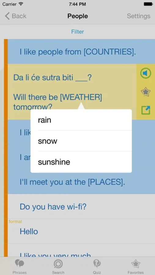 + Add commonly used phrases to your favorites