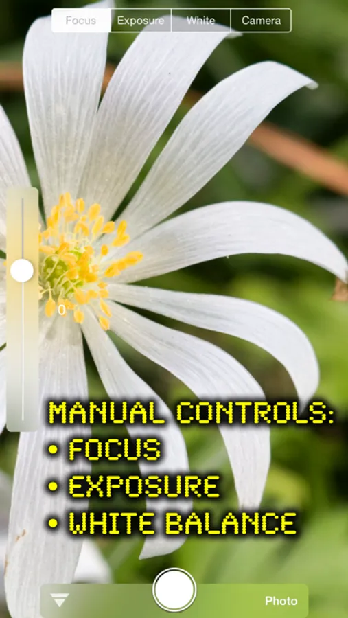 All possible manual shooting controls (focus*, exposure, white balance) usable in both photo and video recording.