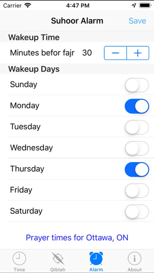 Wither fasting specific days of the week or fasting the whole month of Ramadan, Suhoor Alarm is a smart tool that keeps watching the changes in Fajr time and will wake you up at any desired minutes before Fajr.