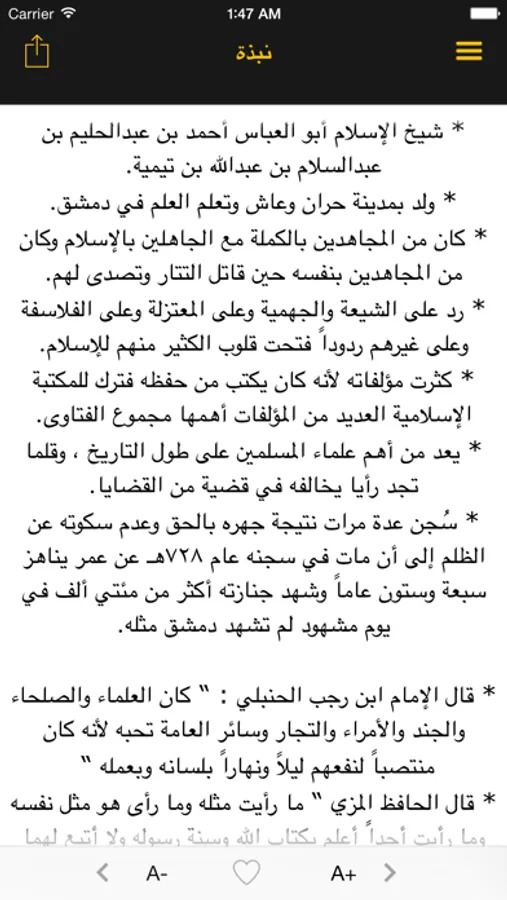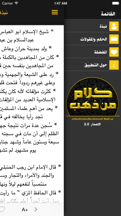 وهذا التطبيق هو لأشهر أقوال وحكم ابن تيمية رحمه الله ومن مميزاته :-
