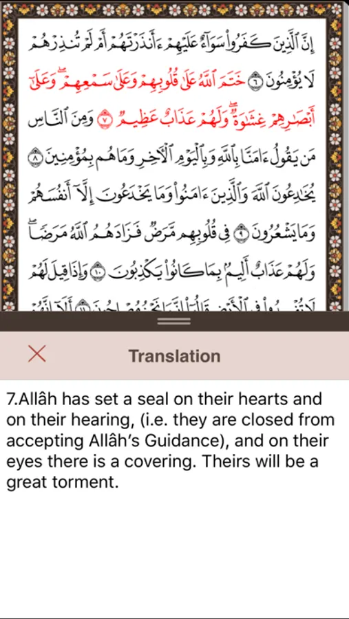 - The pages of Mushaf in this application are characterized by a high-quality zoom in and zoom out feature upon touching any page of the Mushaf, since the application uses a special Quranic font which is not an image.