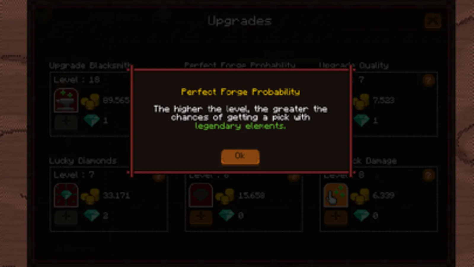 It’s obvious that the more power you put in, the more will be the damage. But a lot depends upon your tool as well. If your pickaxe isn’t strong enough or has a blunt edge, how can you expect it to break the hardest materials in a single shot! As you dig deep into the stones, you’ll find coins and diamonds. You can use these coins to upgrade your tools. You can forge new tools using the resources such as Blacksmith and the more coins you have, the better is the Blacksmith to carve out more powerful tools. You can use these coins to upgrade your Perfect Forge Probability as well. There are many more upgrades available in the shop and they determine the distance you’ll travel below the surface of Earth.