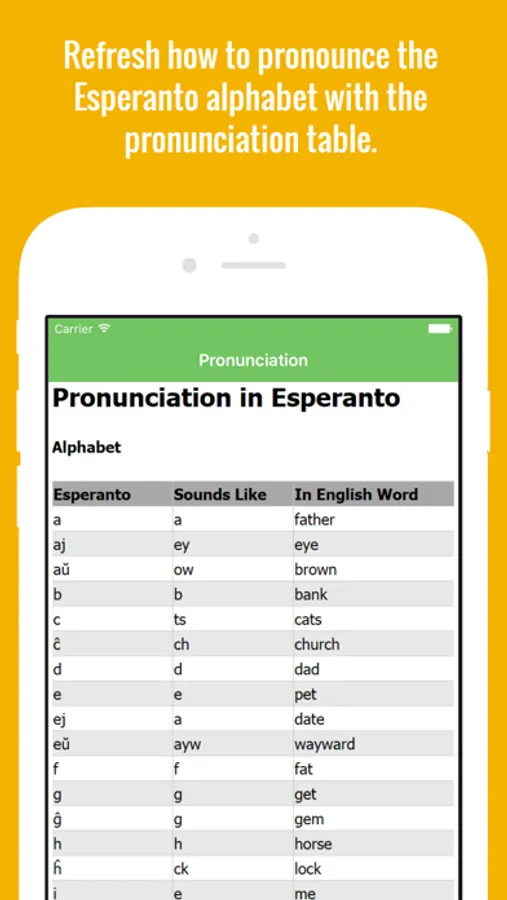 Refresh how to pronounce the Esperanto alphabet with the pronunciation table.