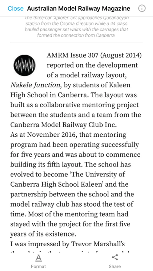 The Australian Model Railway Magazine covers the modelling of Australian railways in all scales and gauges. The magazine regularly features contributors layouts and modelling projects, covering everything from completely scratchbuilt models, through modifying ready-to-run commercial products and kit bashing to 'hints and tips', as well as product reviews and the latest news from the manufacturers.
