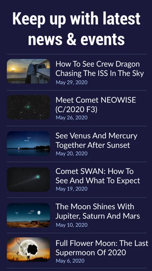 ► Be aware of the latest news from the world of space and astronomy. The app's "What's new" section will tell you about the most outstanding celestial events in time.