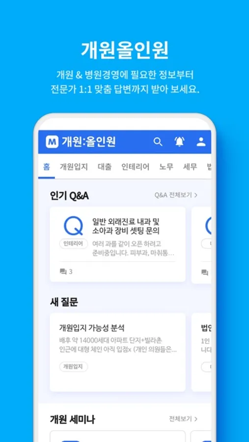 메디게이트가 만든 개원/병원경영 정보공유 플랫폼! 다양한 개원 정보도 찾아보시고, 궁금증에 대한 전문가 답변도 받아보세요.