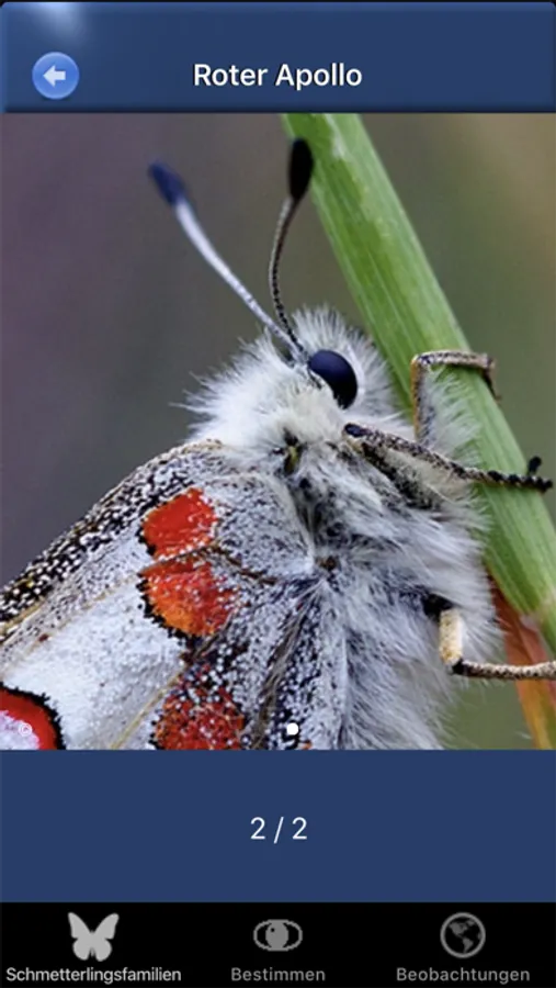 Anders als andere Naturführer liegt dieser Schmetterlings-App ein von promovierten Biologen entwickeltes Bestimmungsschema zugrunde, welches durch die Beantwortung von 10 Fragen einfach zum gewünschten Falter und einer Auswahl ähnlicher Arten führt.